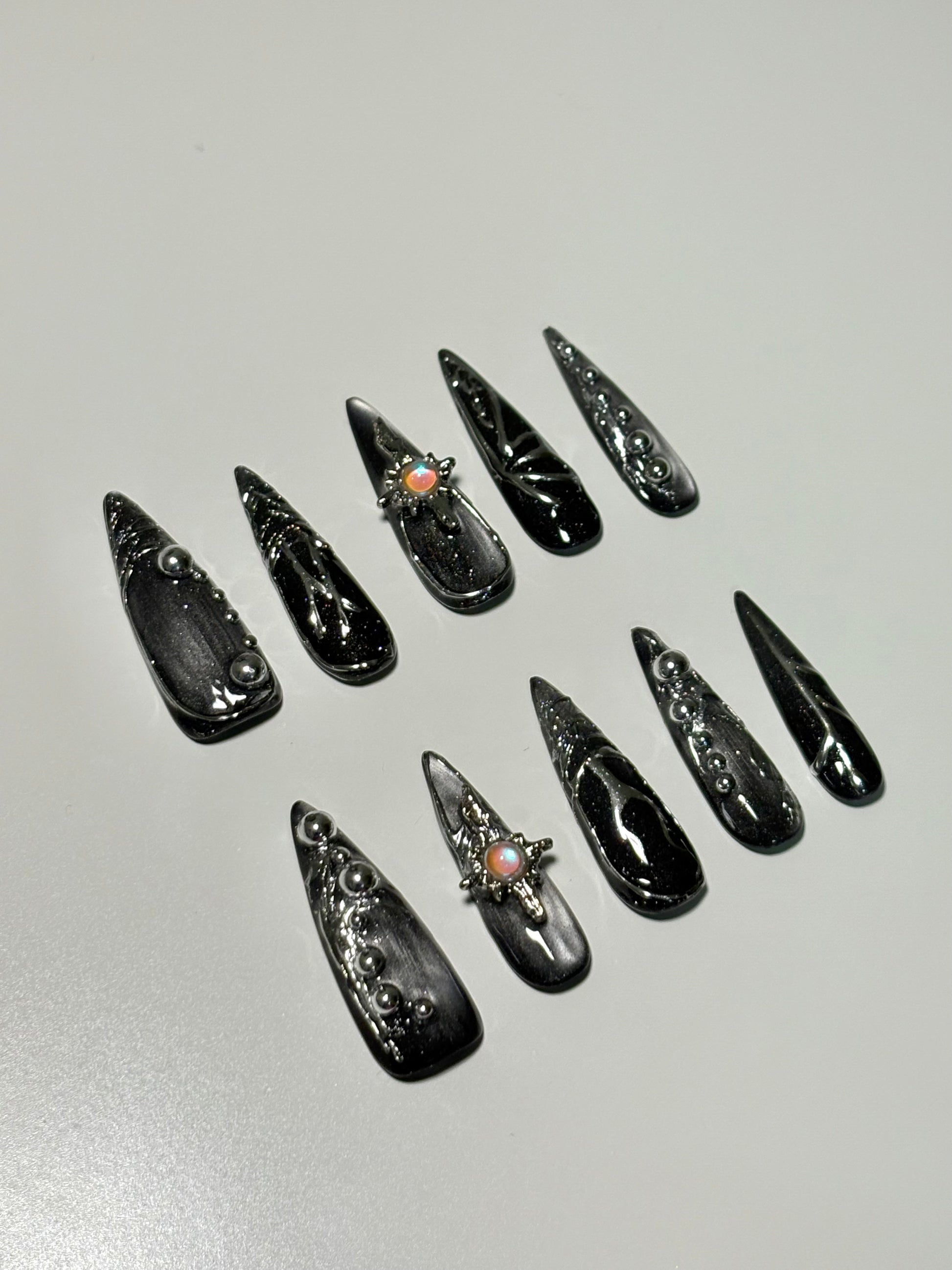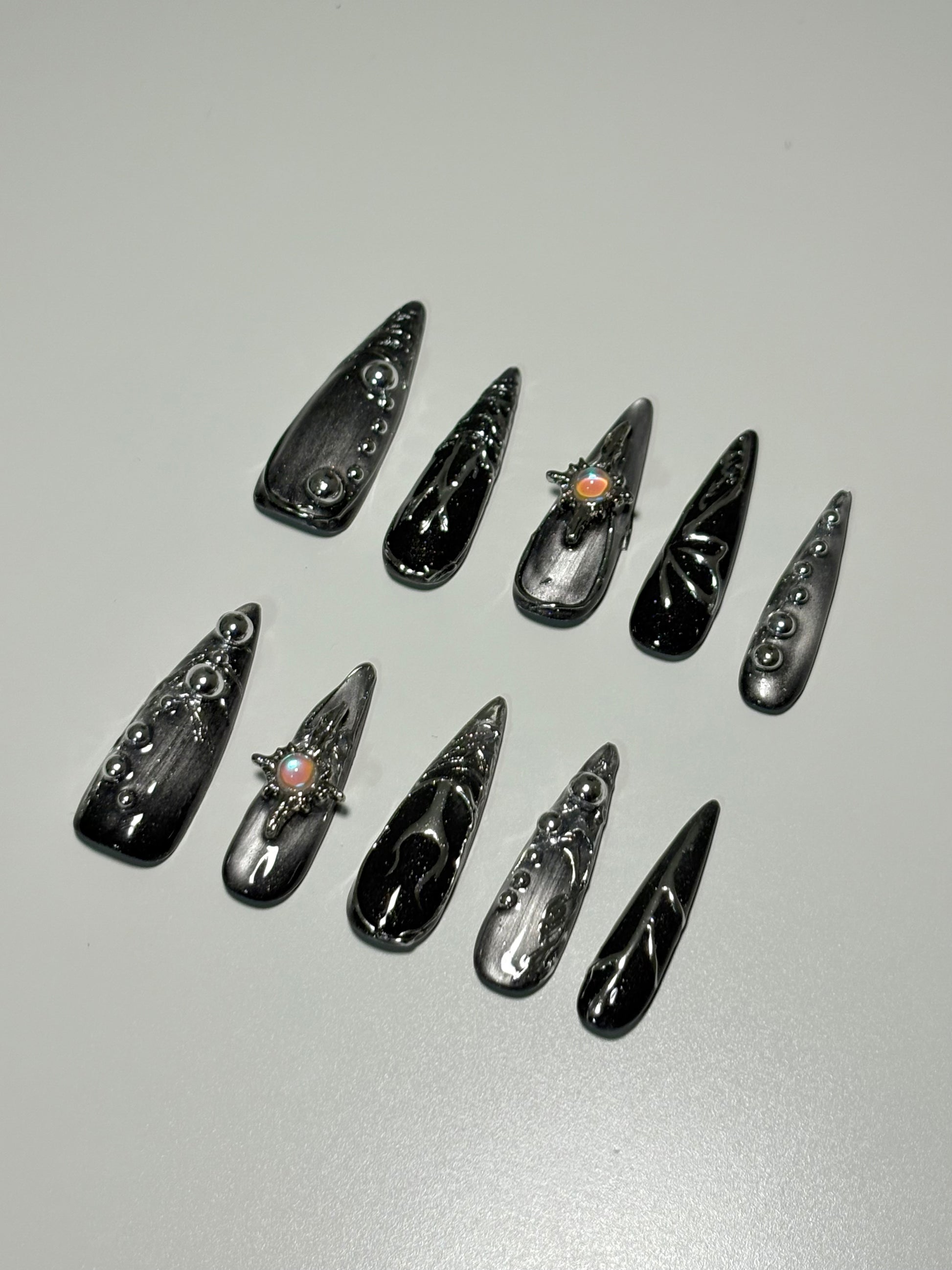 * Application kit: Sticky tabs, mini file, alcohol pad, and wooden stick