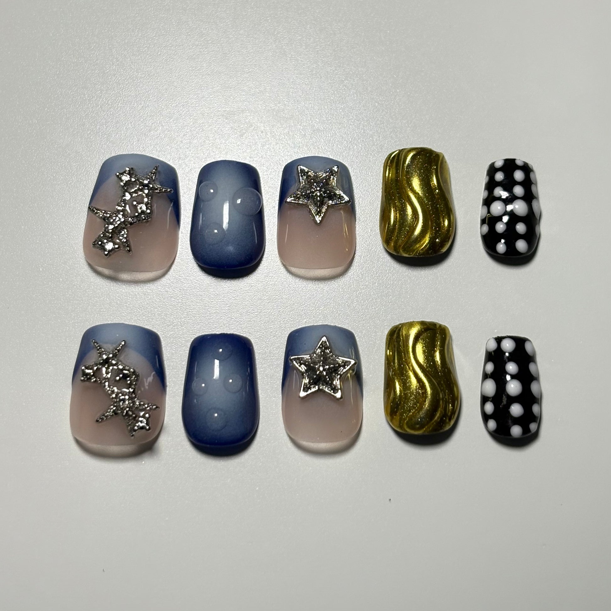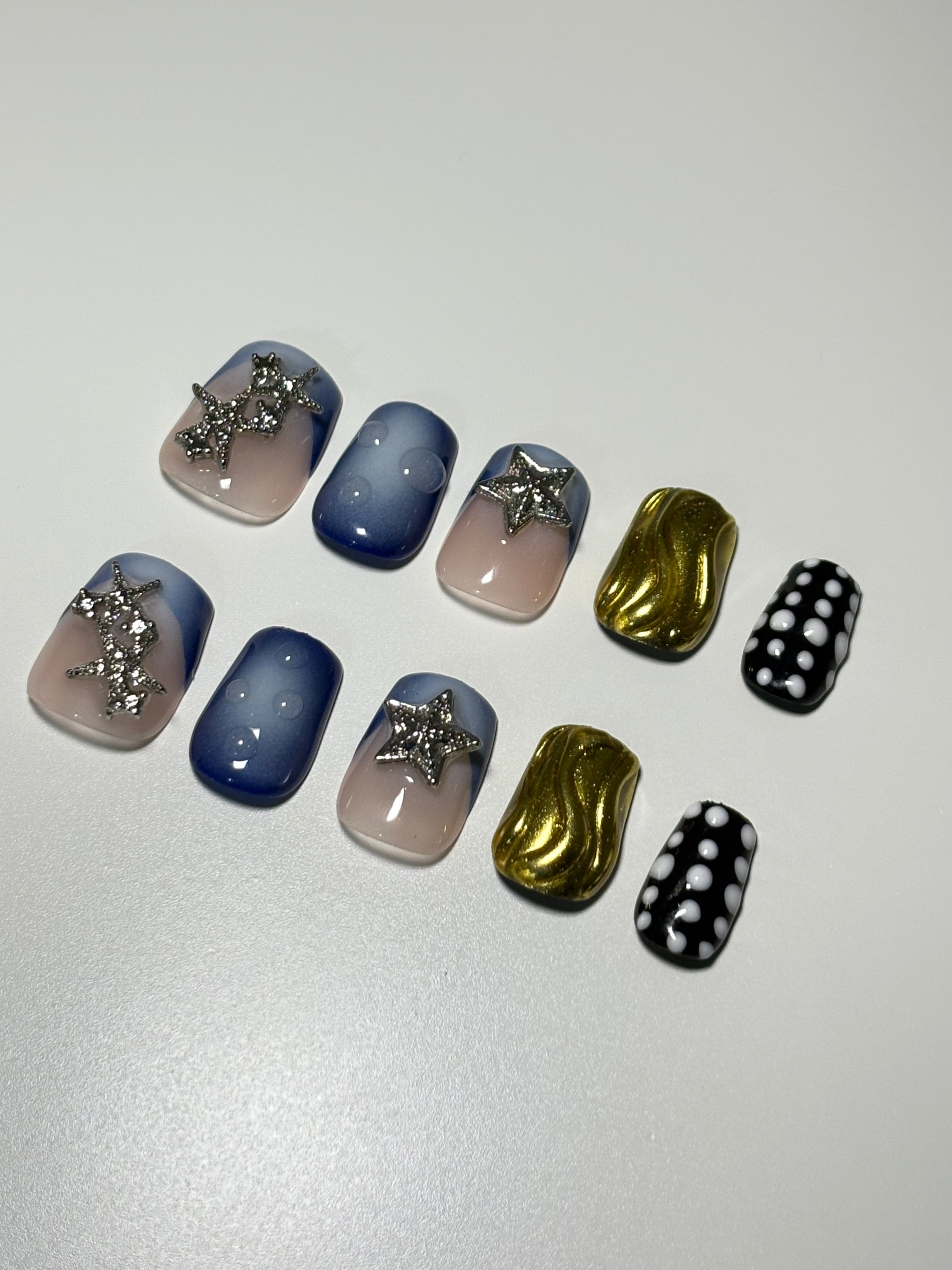 * Application kit: Sticky tabs, mini file, alcohol pad, and wooden stick